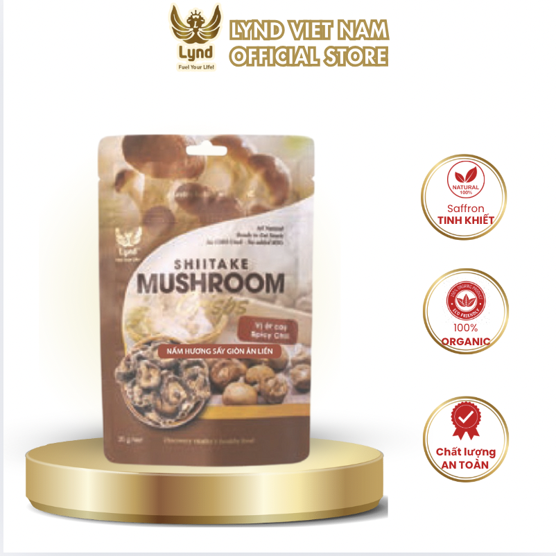 Nấm hương sấy giòn ăn liền LYND được sản xuất theo công nghệ sấy lạnh hiện đại đáp ứng đầy đủ các tiêu chuẩn về an toàn thực phẩm và nguồn gốc xuất xứ đảm bảo giữ trọn vẹn dinh dưỡng, hương vị tự nhiên từ nấm hương và độ giòn tan tuyệt vời đến tay người tiêu dùng. Được sản xuất từ những loại nấm hương chất lượng cao. Nấm hương sấy giòn LYND không chỉ là một món ăn vặt lý tưởng mà còn mang lại nhiều lợi ích dinh dưỡng cho sức khỏe.